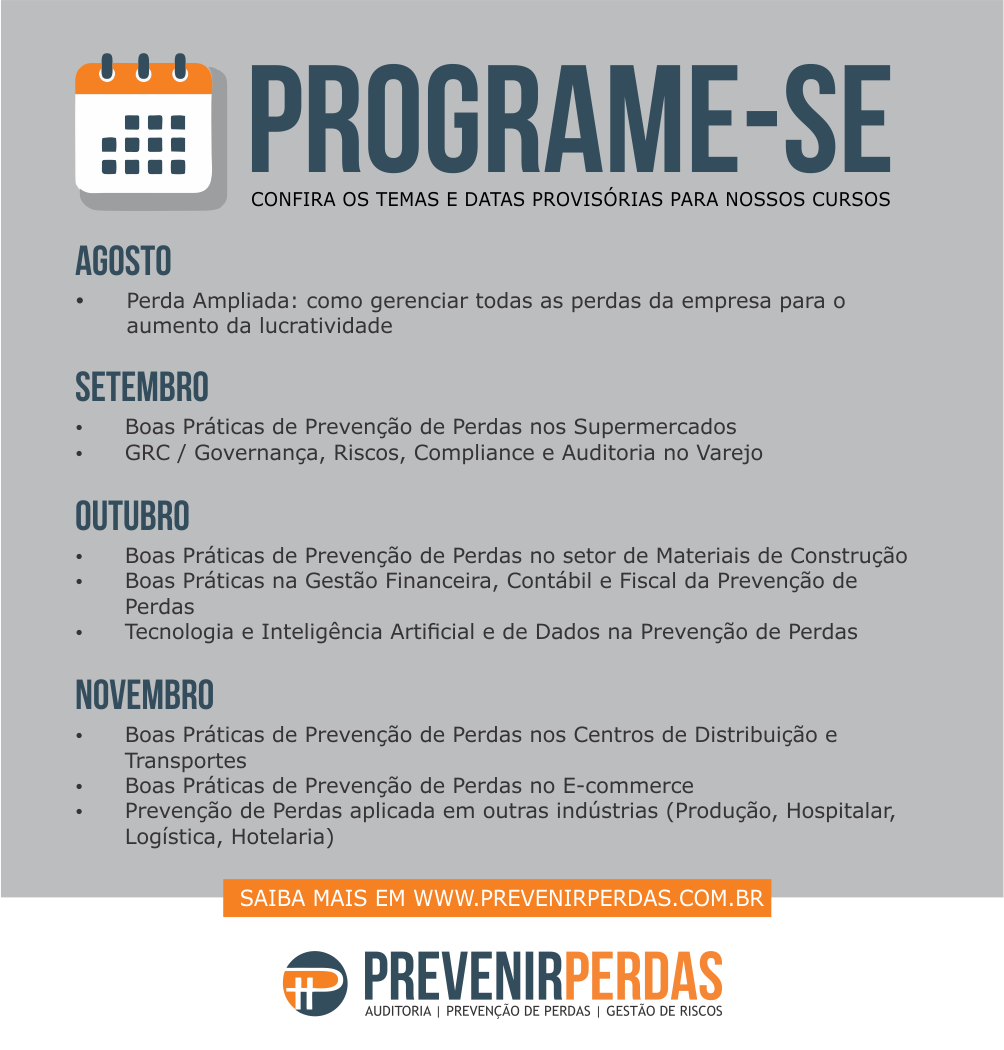 Prevenir Perdas lança calendário de cursos para o 2º semestre